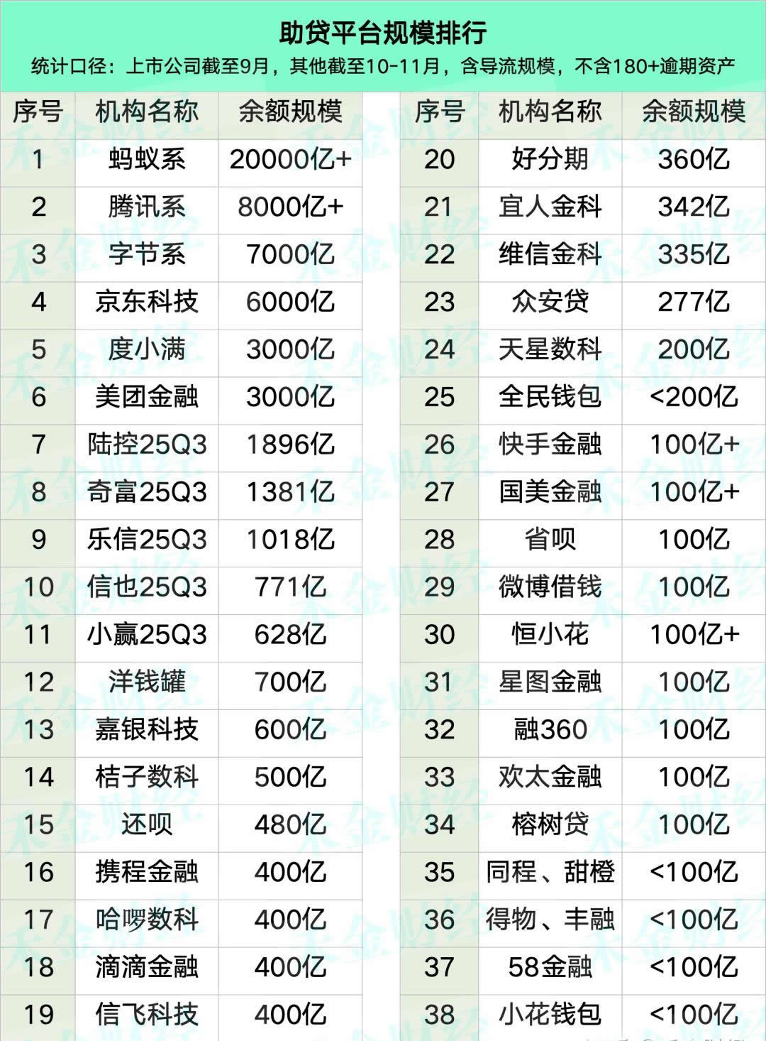 助贷行业正处在一轮深度重塑期——定价下调、客群迁移、人员与组织调整同步发生,平台规模排行榜也随之更新。