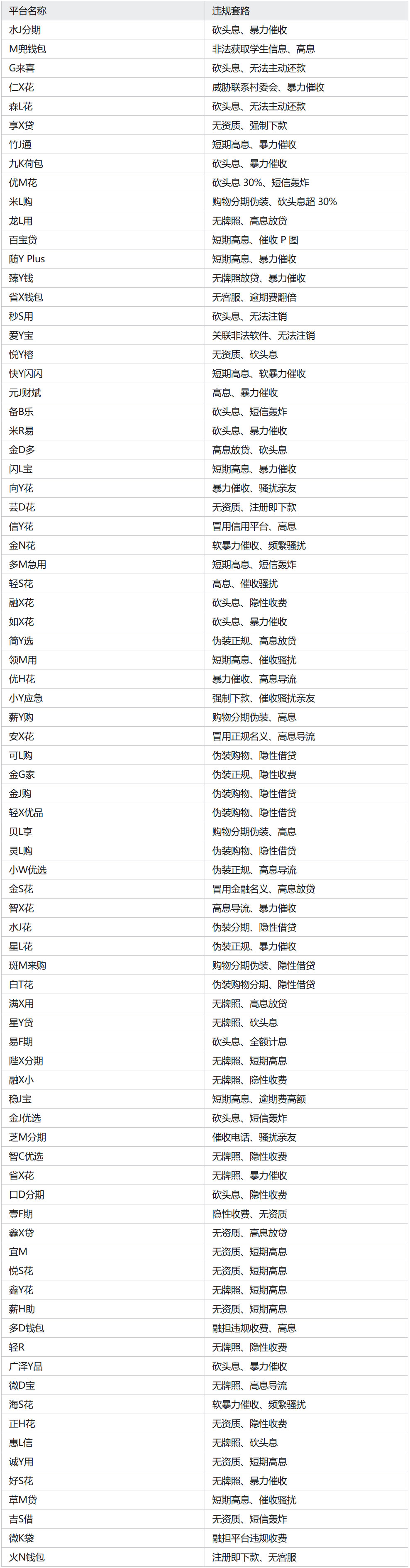 说明:以下平台均涉无牌照放贷、强制下款、砍头息、暴力催收等违规行为,测算年化利率远超法定保护上限(约 14.8%),风险极高!