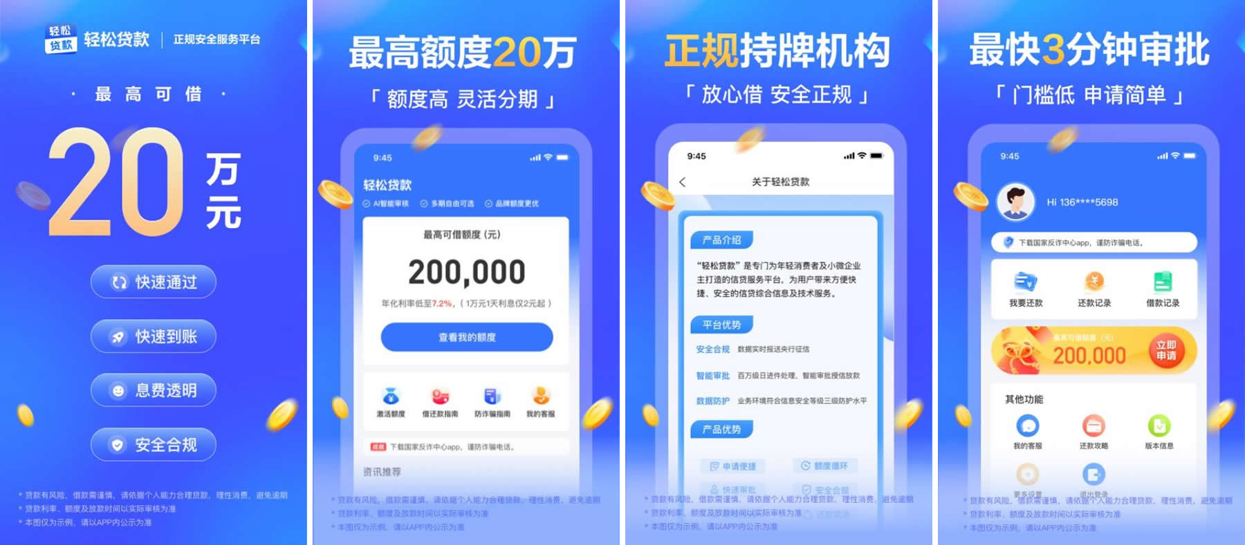 轻松贷款APP,是(武汉市蔡甸区银盈小额贷款有限公司)提供的一款非常简单易用的线上借钱贷款软件,旨在为用户打造更加便捷、高效、安全的借贷服务,全程在手机端就能轻松完成借贷操作,帮助用户能及时缓解自己的资金难题;超低的借款门槛,无需任何抵押,只要自己的信息资料通过审核就能快速完成,并且可以享受超高的借款额度,满足诸多场景使用需求;安全快速的放款模式,全面保障用户的借款提现安全,可快速将款项提现到账使用,方便自由消费。每一笔借款都能详细记录保存,并能随时在轻松贷款官网版软件中查看,知道借款信息,便于能准时按期的还款,避免逾期!