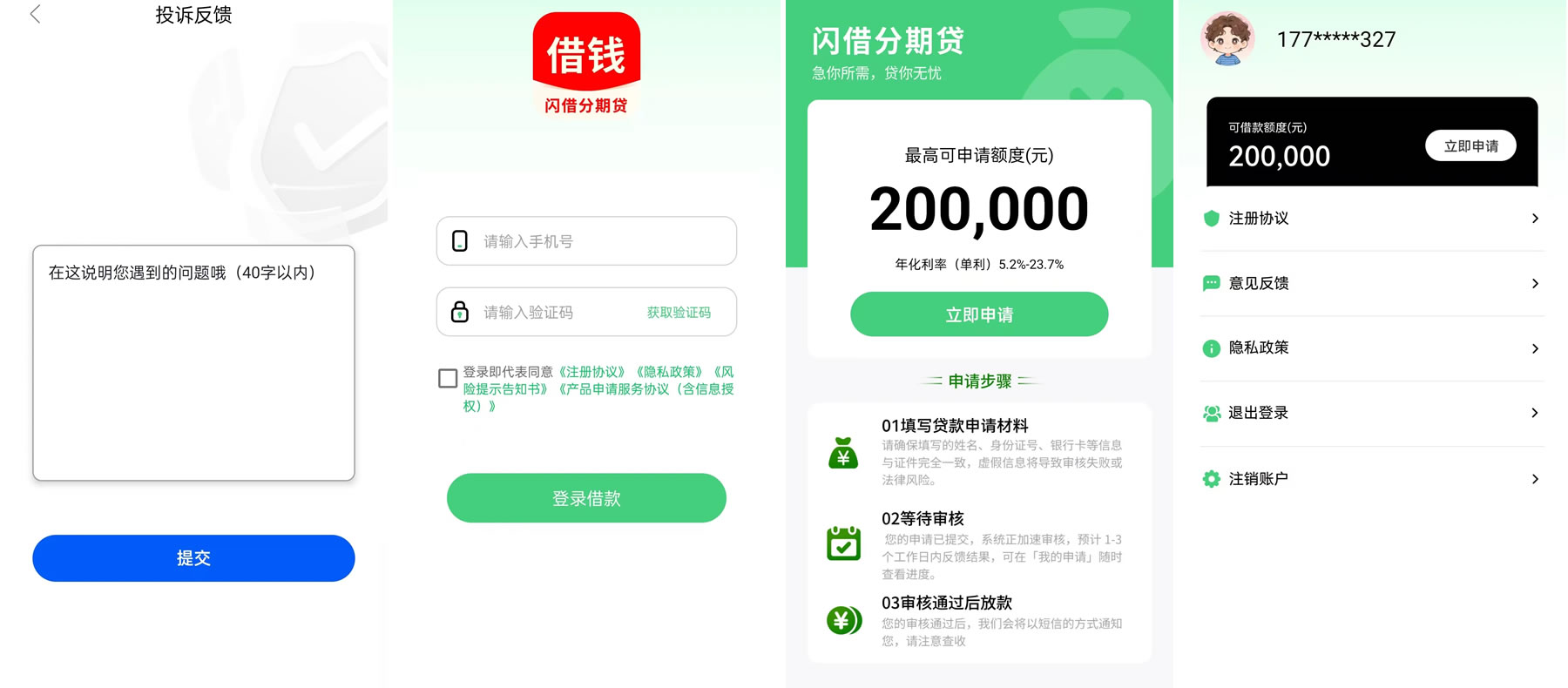产品名称 闪借分期贷 贷款利率 23.70%起