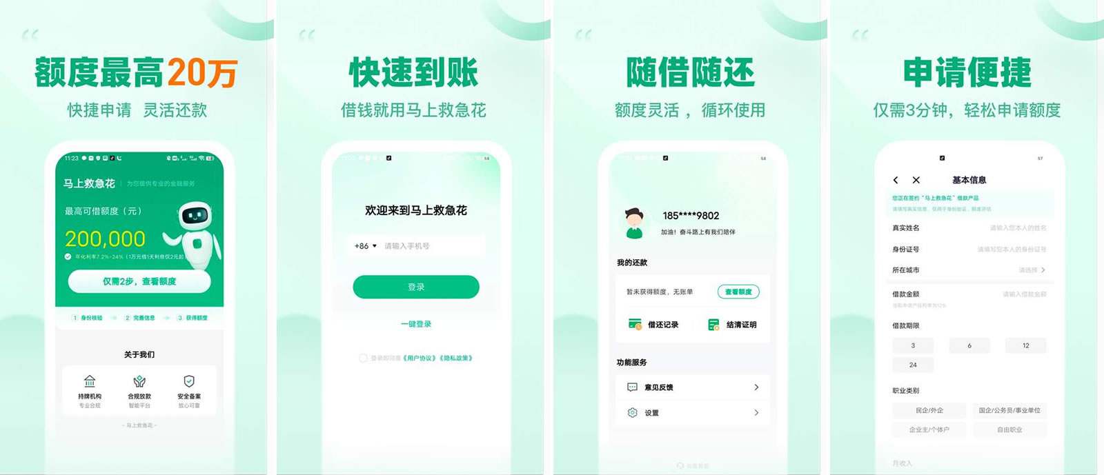 4.操作简便:多种借款期限,借款额度随信用状况变更,提额快;