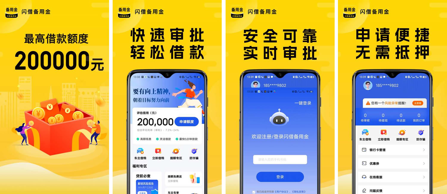 支持在线申请,借款流程简单,极速审批到账,借贷方案灵活,还款方式多样,现金借款,手机