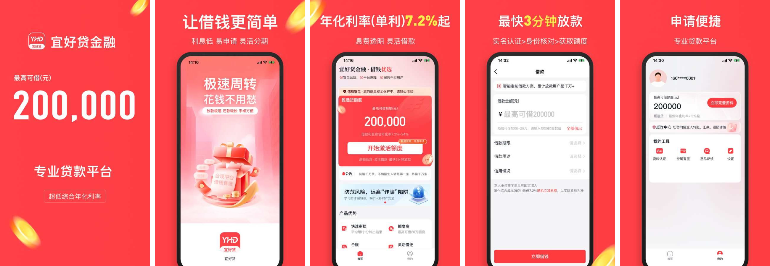 宜好贷,是(长沙经济技术开发区国大小额贷款有限公司)提供的一款懂你的手机借钱APP,随时随地满足贷款、提现等需求。通过大数据分析、人工智能和机器学习技术,为个人消费者、小微企业、个体工商户提供金融产品及金融产品咨询的匹配和推荐等服务,为用户提供一站式专业、智能、安全、方便的现金借贷。凭借身份证,即可在线完成借款申请,快至3分钟放款!根据用户实际情况,提供高至20W额度的贷款额度!