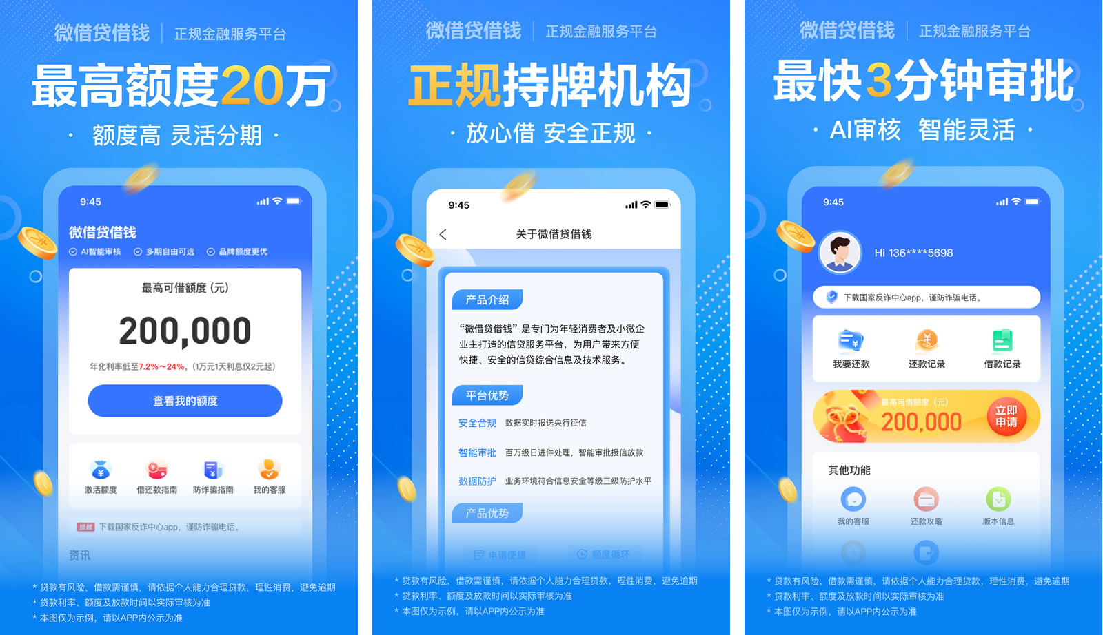3.放款更快:审批通过后,快速放款;微信或APP随时随地申请还款!