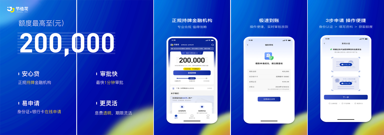 节俭花,是(深圳瀚华小额贷款有限公司)提供的一款信贷产品,是正规、合法运营的金融服务平台,结合用户贷款需求,利用大数据风控技术,为大众提供更安全、专业、智能、便捷的贷款服务。0-20万额度随心选,年化利率7.2%-24%,审核通过后1分钟快速到账。为您提供快捷便利服务!