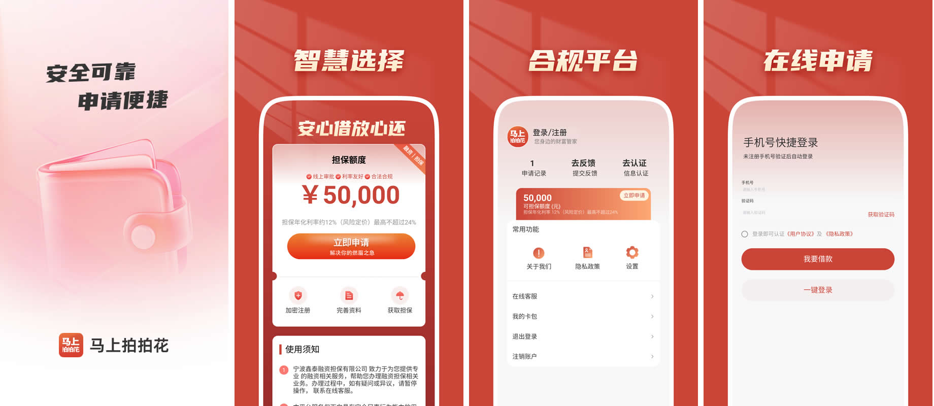 马上拍拍花,是(宁波鑫泰融资担保有限公司)提供的一款信贷产品,为急需借钱周转贷款用户,提供的一站式借钱贷款服务平台,为借款人提供专业的贷款服务在线实现贷款申请。